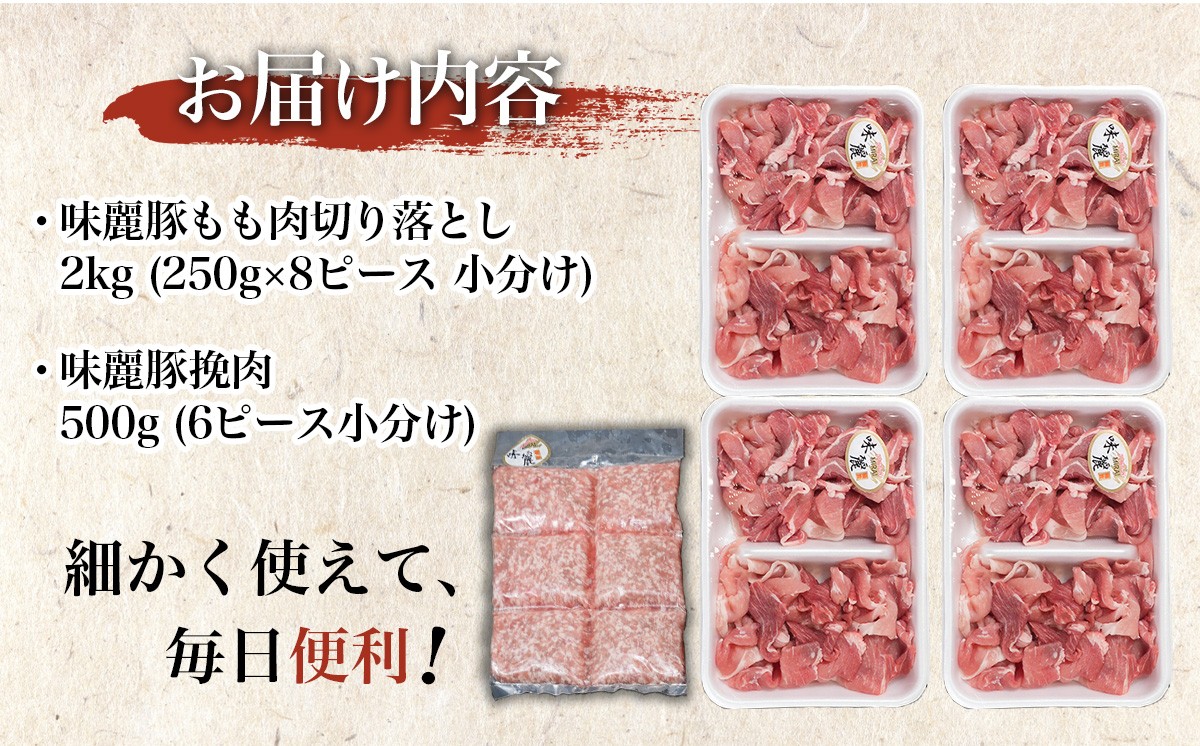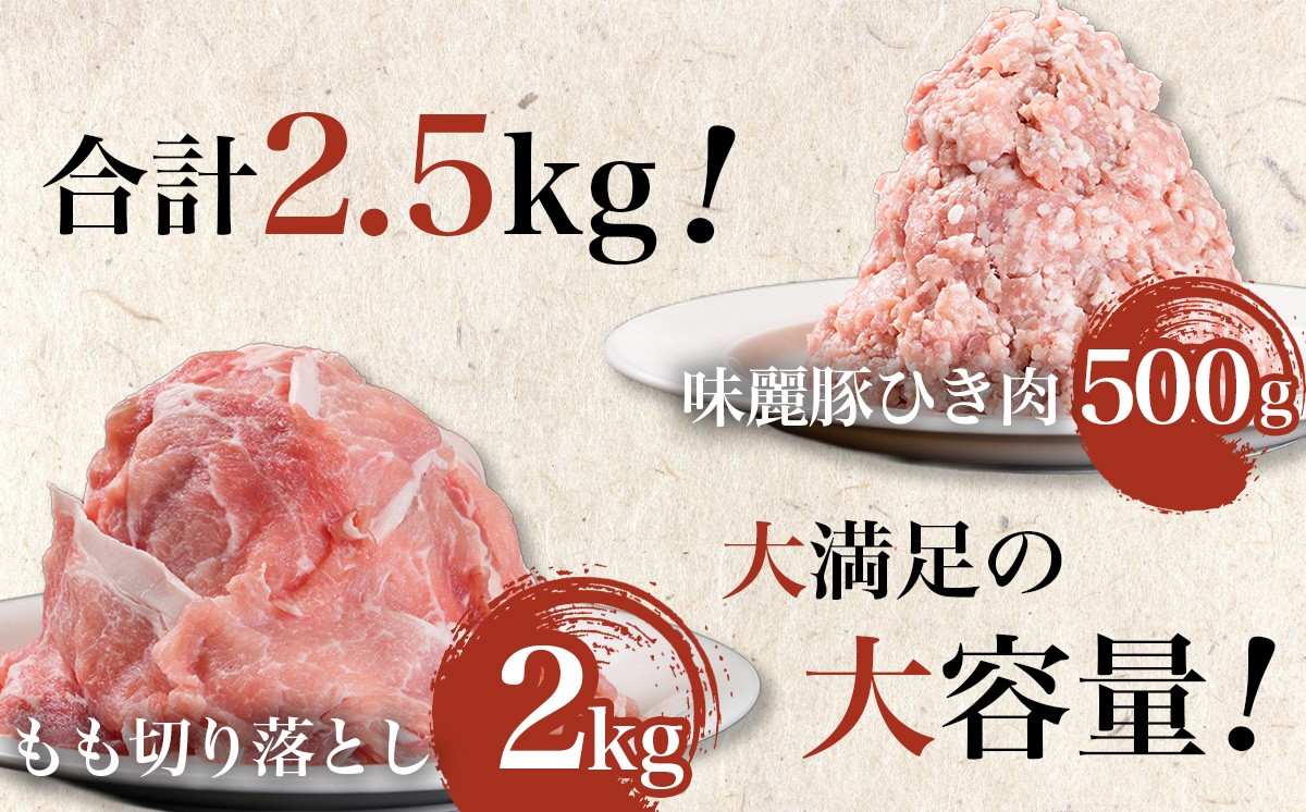 みらい豚もも肉切り落とし ・ みらい豚挽肉セット 合計 2.5㎏ │ 豚肉 豚 ぶた肉 ポーク モモ ひき肉 焼肉 しゃぶしゃぶ ブランド豚 小分け 冷凍 詰め合わせ 村下商事 茨城県 つくば市