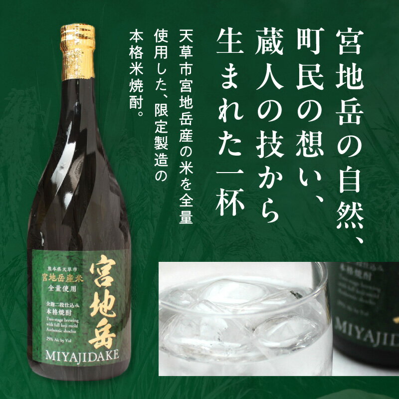 【ふるさと納税】米焼酎 宮地岳 720ml 選べる 本数 天草市 宮地岳町産米使用 全麹 二段仕込み 限定製造 本格米焼酎 アルコール 25度 焼酎 旨味 コク ほのかな 吟醸香 すっきりとした味わい 食中酒 ロック 水割り お酒 酒 特産品 熊本県 お取り寄せ 送料無料