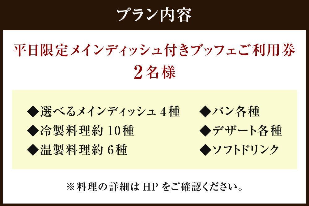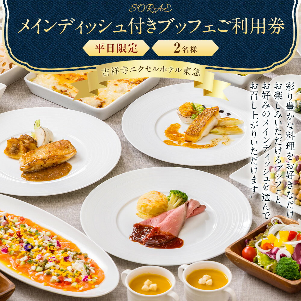 【ふるさと納税】【吉祥寺エクセルホテル東急】SORAE 平日限定 メインディッシュ付きブッフェ ご利用券 2名様 メインディッシュ 冷製料理 温製料理 パン デザート スイーツ ソフトドリンク 飲料 お食事券 商品券 ギフト券 飲食 ランチタイム ディナータイム 送料無料