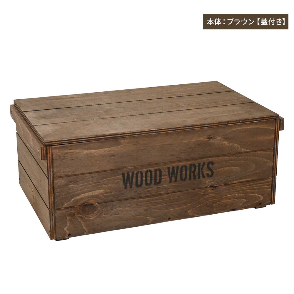 【ふるさと納税】WOOD WORKS ヴィンテージ風 木箱【選べる本体カラー:ブラウン/ナチュラル/ミリタリーグリーン】【蓋付き】完成品 [木箱 ヴィンテージ収納ボックス 日本製 手作り スタッキング収納 A4収納可能 ウッドボックス アウトドア収納]