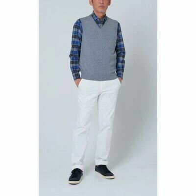 - 【ふるさと納税】日本製 カシミヤ100% Vベスト ライトグレー Mサイズ [2550]