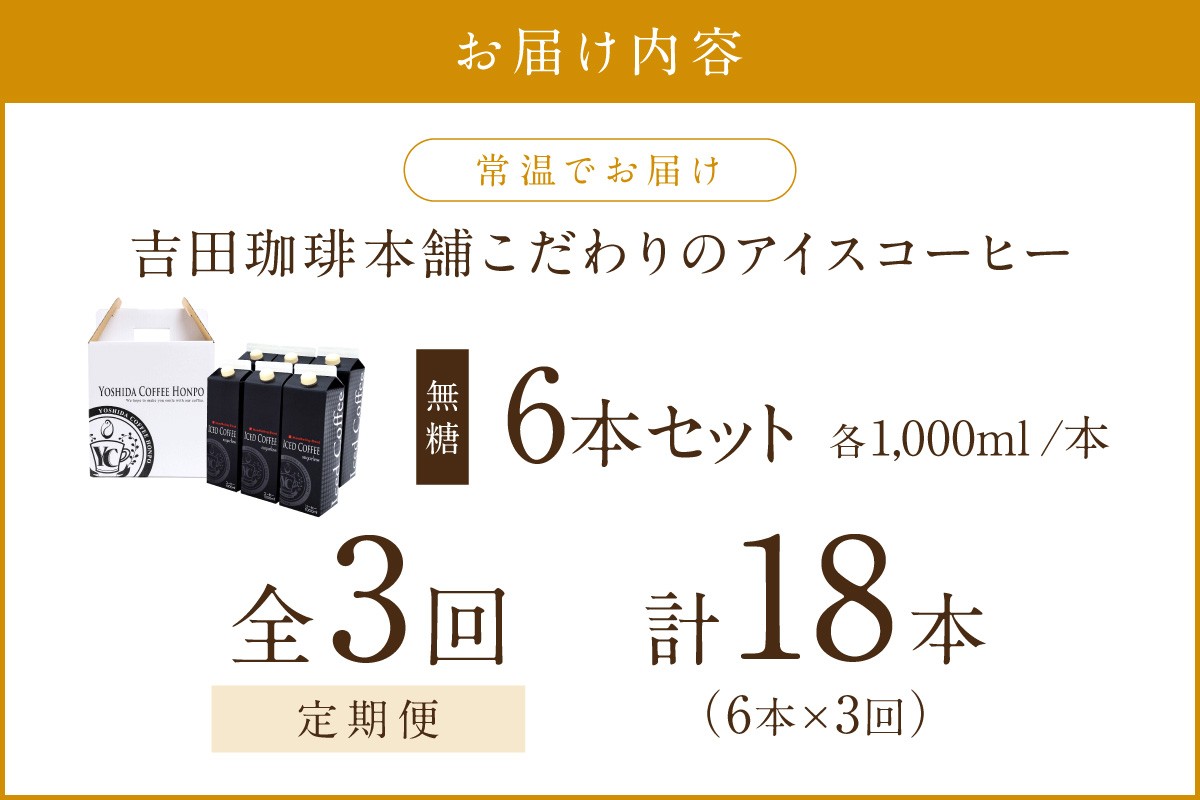 【吉田珈琲本舗】こだわりのアイスコーヒー無糖 6本 3ヶ月定期便【配送不可地域:北海道・沖縄・離島】【010B-005】