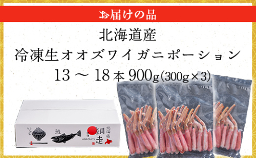 北海道産 冷凍生オオズワイガニポーション13~18本 900g(300g×3) ABR018