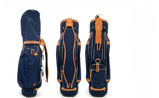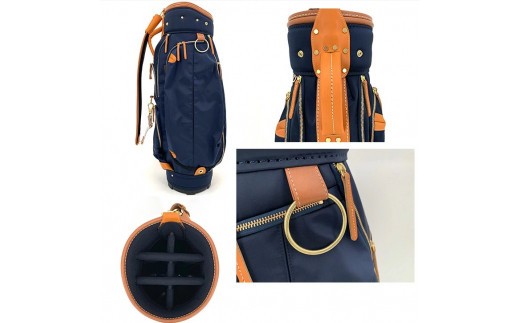 ハンドメイド高密度ツイルナイロンキャディバッグ≪ネイビー×ライトブラウン≫