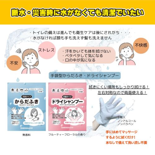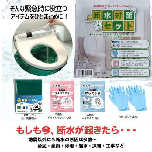 - 防災断水対策セット(緊急トイレ、シャンプー、からだふき)×3セット