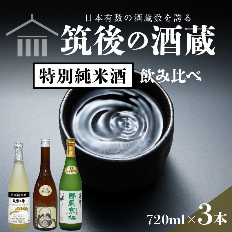 - ≪地場産くるめオリジナル≫筑後の酒藏 特別純米酒 3種飲み比べセット(720ml×3本)_純米酒 飲み比べ 720ml × 3本 セット 筑後の地酒 筑紫の誉 庭のうぐいす だるまラベル 比翼鶴 耶馬寒梅 日本有数 酒処 地場産 くるめオリジナル 飲料 お酒 酒 日本酒 地酒 アルコール 晩酌 お取り寄せ 福岡県 久留米市 送料無料_Ej024