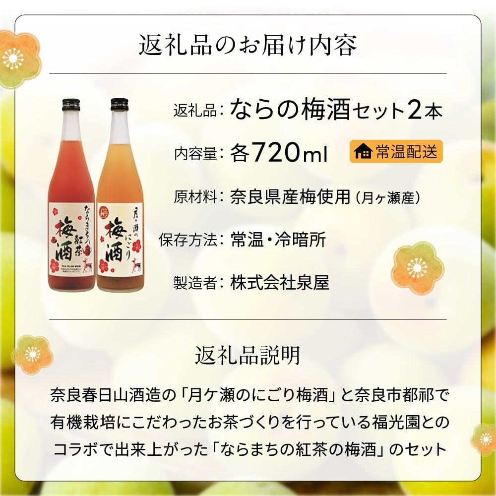 奈良の梅酒 飲み比べ 720ml×2本 月ヶ瀬のにごり梅酒 ならまちの紅茶の梅酒 パーティ 誕生日 お祝い プレゼント ギフト 贈り物 お歳暮 国産 お酒 酒 おさけ うめ うめしゅ 梅酒 ふるさと納税 人気 おすすめ 奈良県 奈良市 月ヶ瀬 株式会社泉屋 奈良県 奈良市