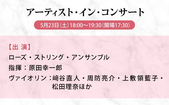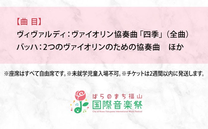 - チケット ばらのまち福山国際音楽祭2026演奏会チケット【5月23日(土) リーデンローズ大ホール アーティスト・イン・コンサート】 広島県福山市/ばらのまち福山国際音楽祭実行委員会 音楽祭 演奏会 クラシック チケット [BAGA012]