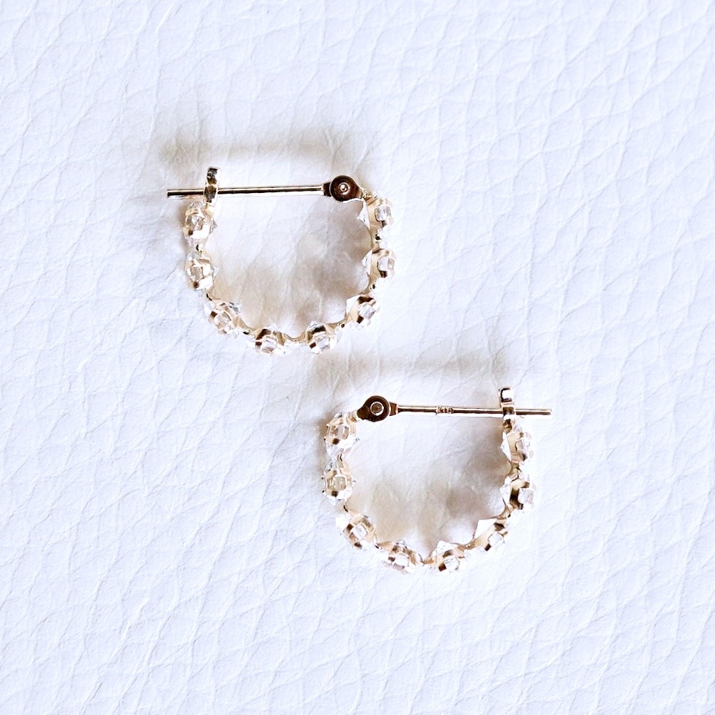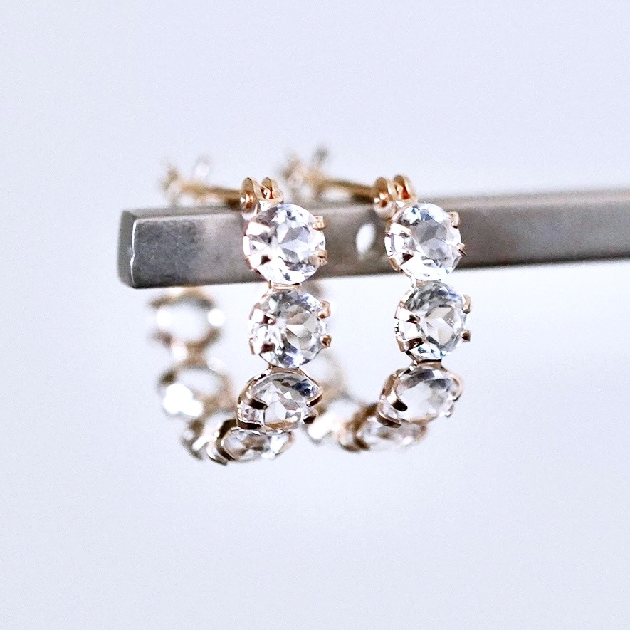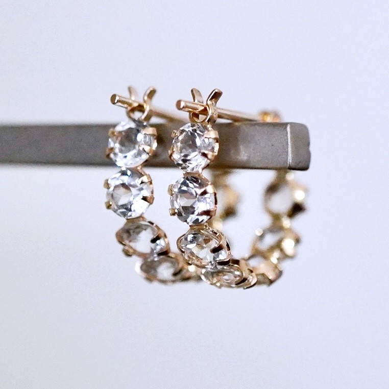 K10YG(10金) イエローゴールド ホワイトトパーズ フープ ピアス エタニティー オシャレ 保証書付 YF-20 242-067-e
