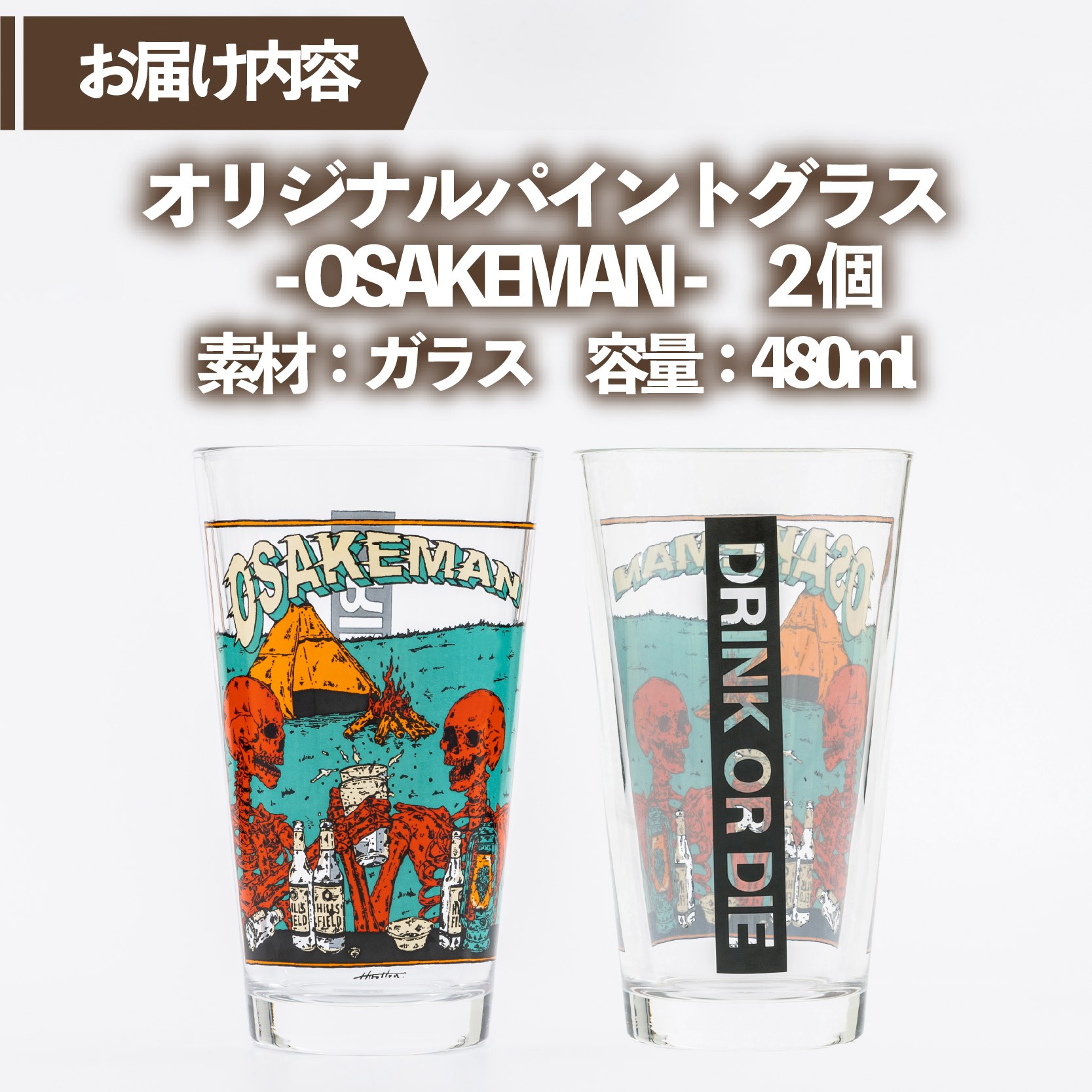 - オリジナル パイントグラス -OSAKEMAN- 480ml 2個 ペアグラス アウトドア キャンプ アウトドア用品 ペア 食器 ガラス コップ ビール 酒 キャンプ用品 おすすめ 人気 静岡県 長泉町 HILLSFIELD