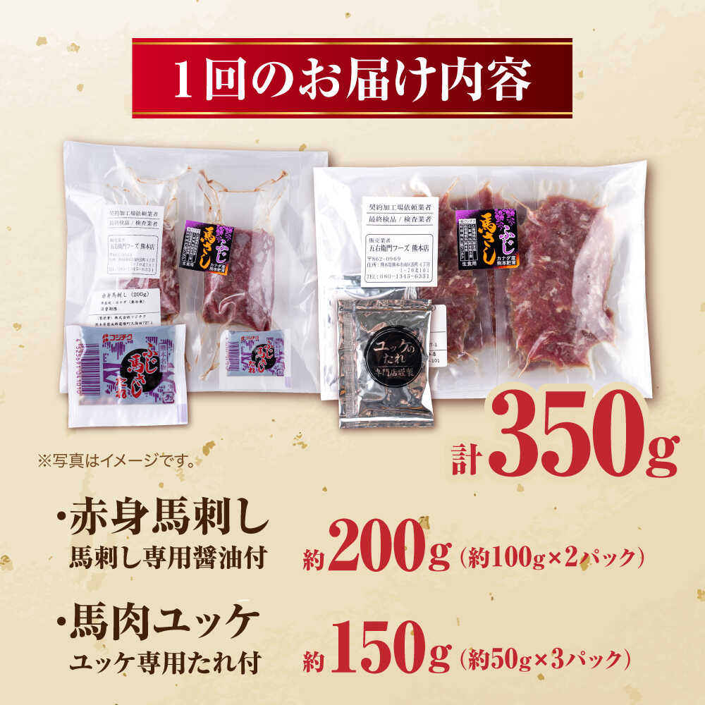 【ふるさと納税】【全3回定期便】赤身馬刺し・馬肉さくらユッケ セット 赤身馬刺し 約100g×2パック 馬肉さくらユッケ 約50g×3パック 計350g 馬刺し 馬肉 小分け セット 冷凍【五右衛門フーズ熊本店】[AYBV024]
