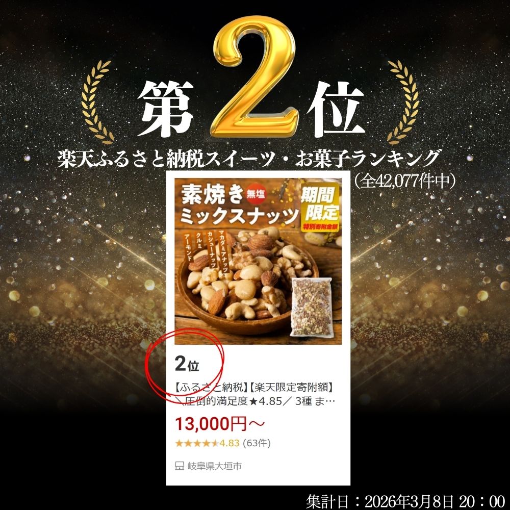 - 【ふるさと納税】楽天ランキング2位! \圧倒的満足度★4.85/ 3種 または 4種 ミックスナッツ 2kg(1kg × 2 ) / 2kg (1kg × 2) 3.2kg (400g × 8) チャック付き 大容量 簡易包装 無塩 素焼き アーモンド クルミ カシューナッツ マカダミアナッツ アニスティ 岐阜県 大垣市