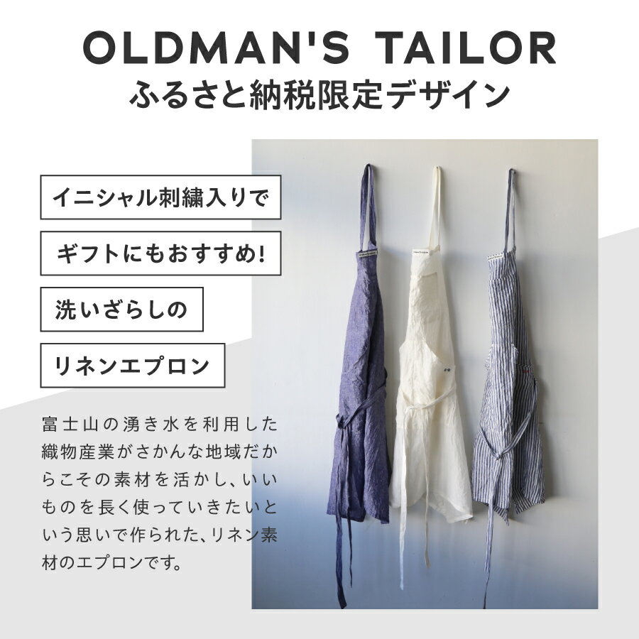 【ふるさと納税】 エプロン リネン 100% 選べるカラー 白 ブルー ストライプ 男女兼用 フリーサイズ 日本製 イニシャル刺繍 上品 光沢感 ギフト プレゼント 贈り物 OLDMAN'S TAILOR・R&D.M.Co- オールドマンズテーラー 【ふるさと納税限定デザイン】