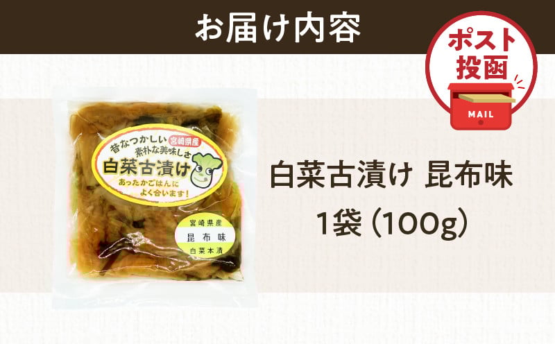 \ポスト投函/白菜古漬け(昆布味) 計1袋 (100g) 漬物 おかず 野菜 加工品 国産_T025-0235