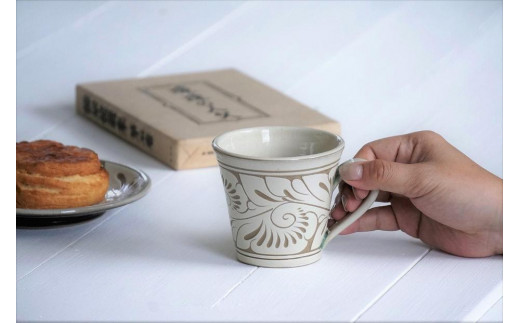 - <受注生産品>緑釉唐草白抜線彫 ( マグカップ小 × 1個 )|沖縄 那覇市 日用品 食器 グラス マグカップ 唐草 線彫 陶器 受注生産品 手作り 伝統工芸 やちむん