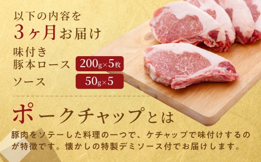 【3ヶ月定期便】カネカン竹内 ポークチャップ(懐かしの特製デミソース付)200g×5枚【 ふるさと納税 人気 おすすめ ランキング ポークチャップ 豚肉 豚 ポーク ケチャップ ポークソテー 国産 北海道産豚 濃厚 おかず お弁当 北海道 室蘭市 送料無料 】MROA127