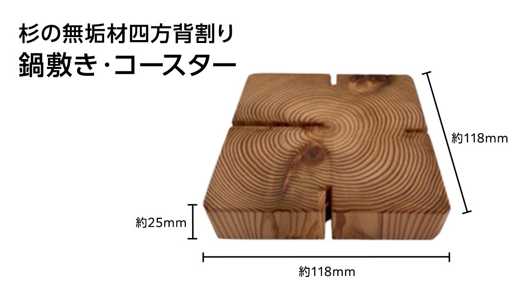 - 鍋敷き コースター 杉の無垢材四方背割り 杉 スギ なべしき 国産 木材 (AT004)