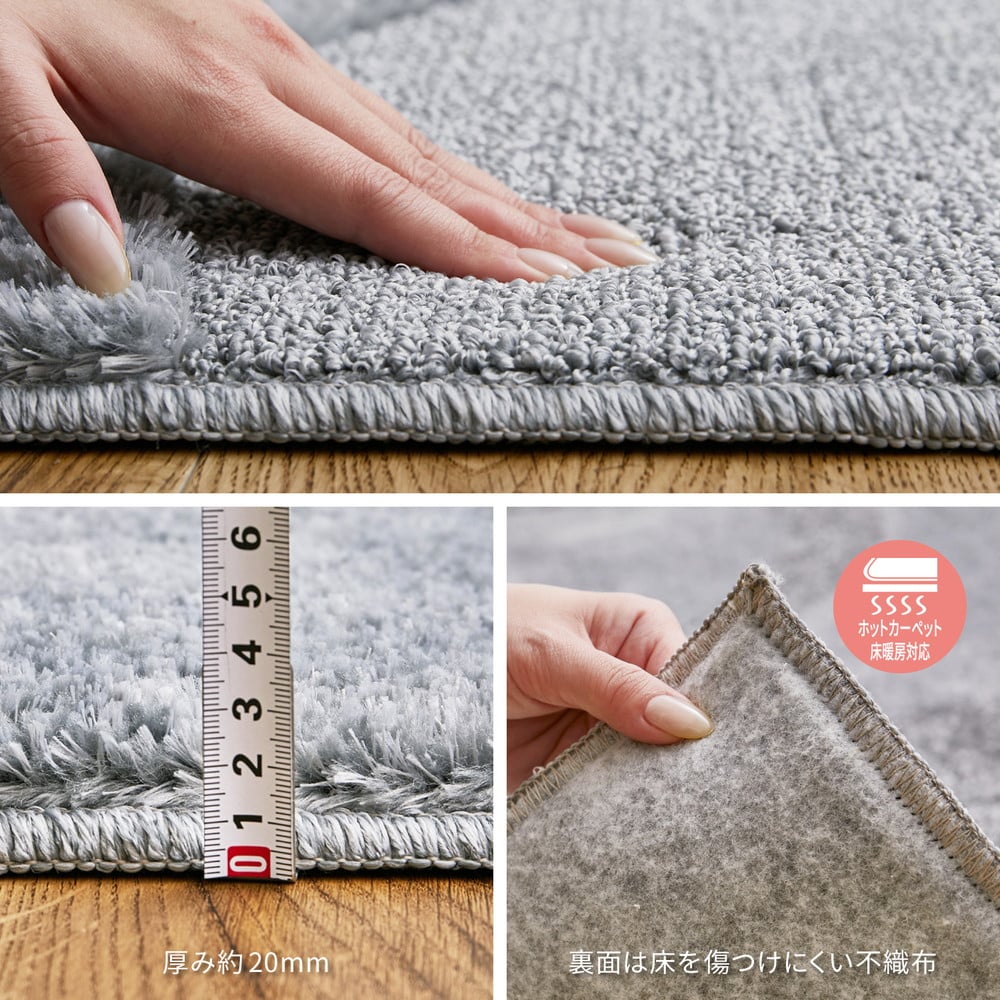 日本製 ふっくら厚手の防ダニ・抗菌防臭加工 カーペット 1枚 約185×240cm グレー 350118318 [3459]