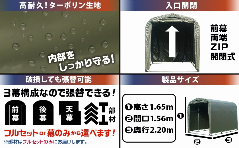 サイクルハウス3台用 ARMY【巻上げ式】_84-J401-S2026_(都城市) サイクルハウス 3台用 アーミー 巻上げ式 組立式 組立説明書付 収納 便利 耐久性 張替用幕 前幕 後幕 天幕 幕取替