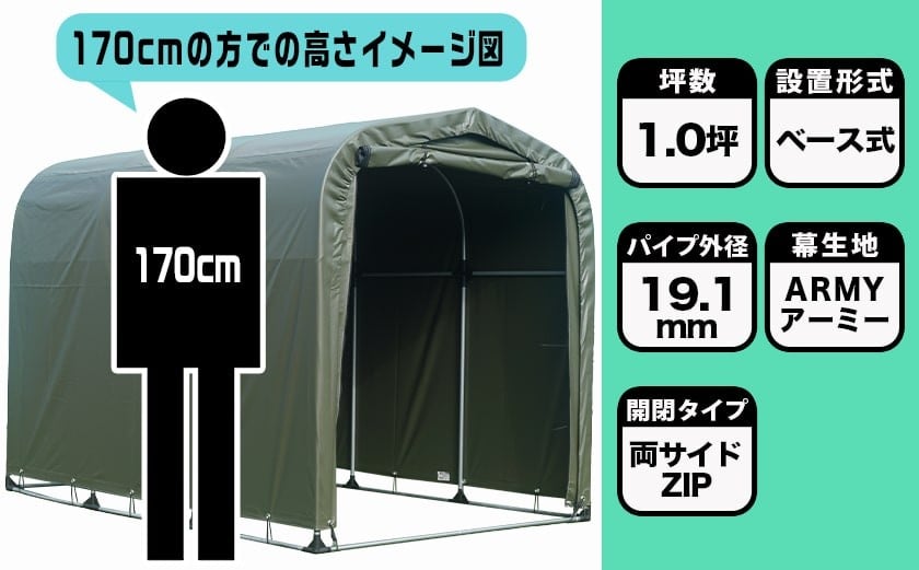 - サイクルハウス3台用 ARMY【巻上げ式】_84-J401-S2026_(都城市) サイクルハウス 3台用 アーミー 巻上げ式 組立式 組立説明書付 収納 便利 耐久性 張替用幕 前幕 後幕 天幕 幕取替