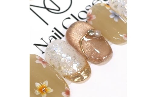 ネイルチップ ミディアム【金花日和】Antellijan大宮ネイルサロンのハンドメイド<サイズ選択可>