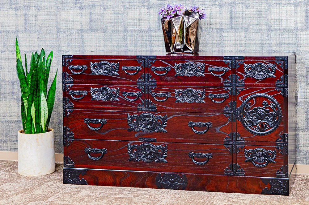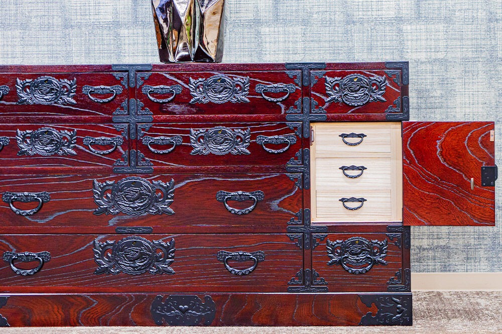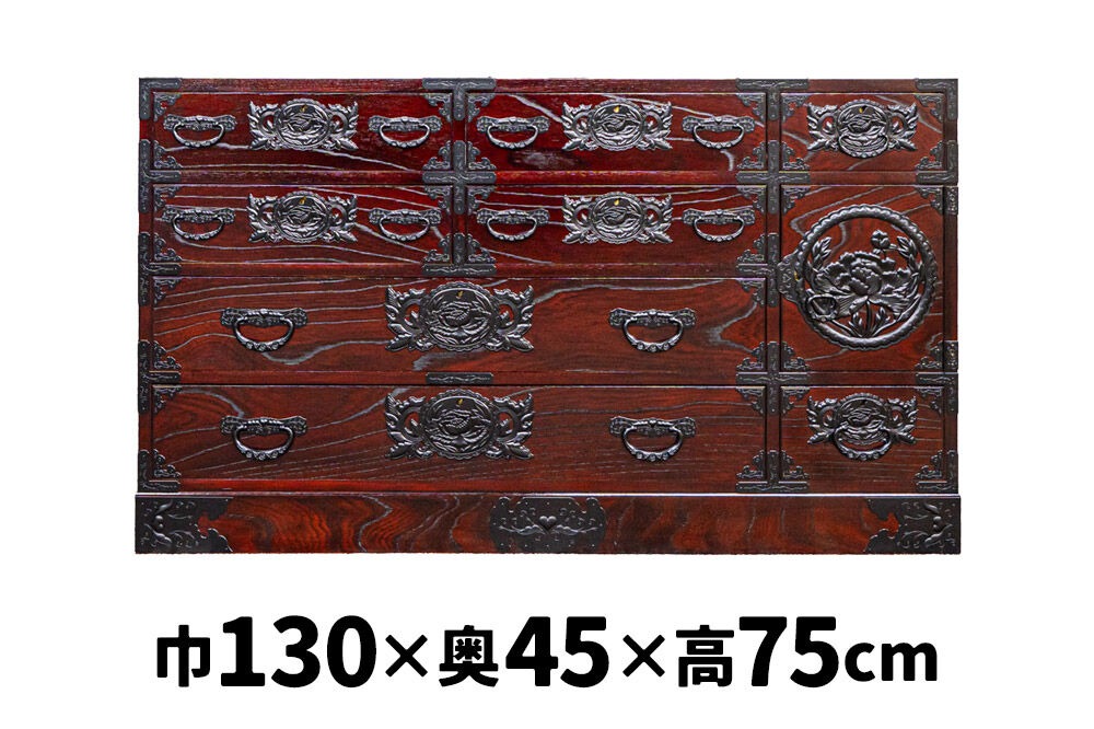- 仙台箪笥 130巾横長箪笥 拭き漆塗り KC-12B (申込書返送後、1ヶ月~6ヶ月程度でお届け) 欅産業 職人 おすすめ 船箪笥 [インテリア タンス 収納 家具 和 モダン 高級 和箪笥 小箪笥 伝統 工芸品 仏壇 仏具 神具 飾り棚 欅 漆塗 彫金 金具 装飾 仙台箪笥 船箪笥 舟箪笥 宮城 利府 欅産業]|06_kyk-730301