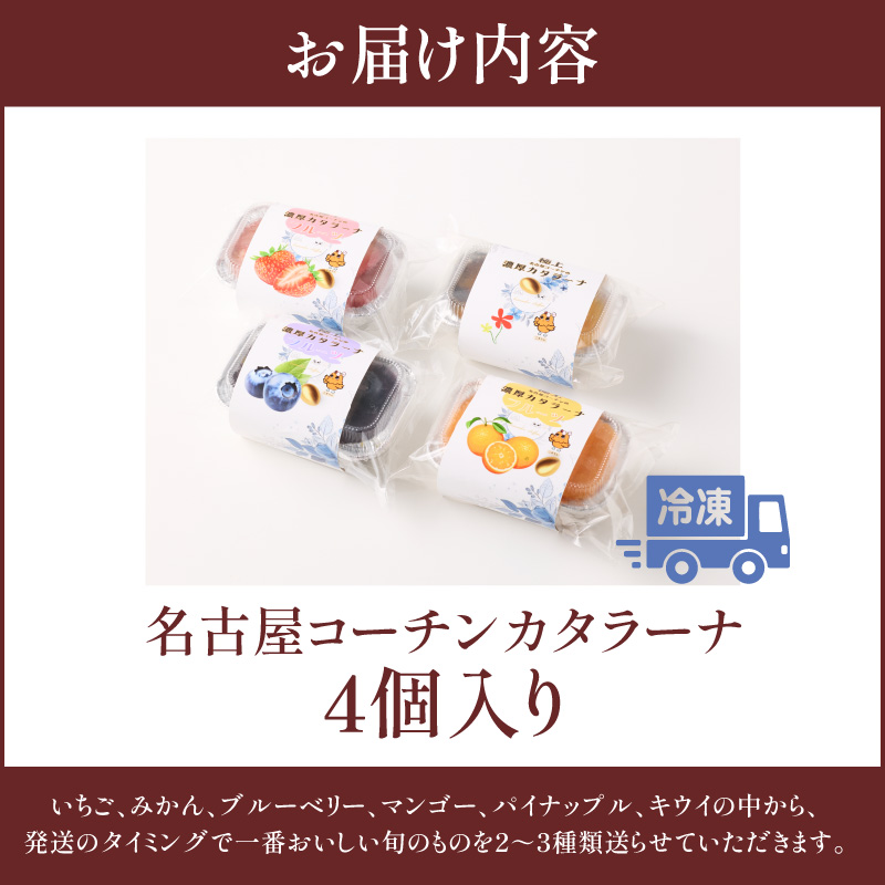 旬果の宝箱 名古屋コーチンカタラーナ 4個入 [115N13] カタラーナ 名古屋コーチン 地赤卵 濃厚 後味さっぱり 旬の フルーツ のせ 生クリーム 南蛮窯 冷凍 デザート スイーツ おやつ お菓子 洋菓子 朝採れ卵使用 お取り寄せ お取り寄せスイーツ 愛知県 小牧市 送料無料