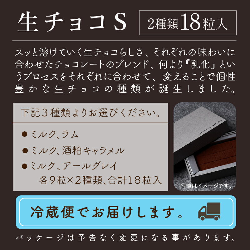 - 【ふるさと納税】 「お好きな組み合わせを1つ選べる」生チョコ《S》9粒 x 2箱 チョコレート スイーツ バレンタイン チョコ ご褒美 ホワイトデー お取り寄せ 人気 自分用 ランキング おすすめ ギフト 母の日 小松市 石川県 ふるさと 納税 010216【ケーキハウスマルフジ】