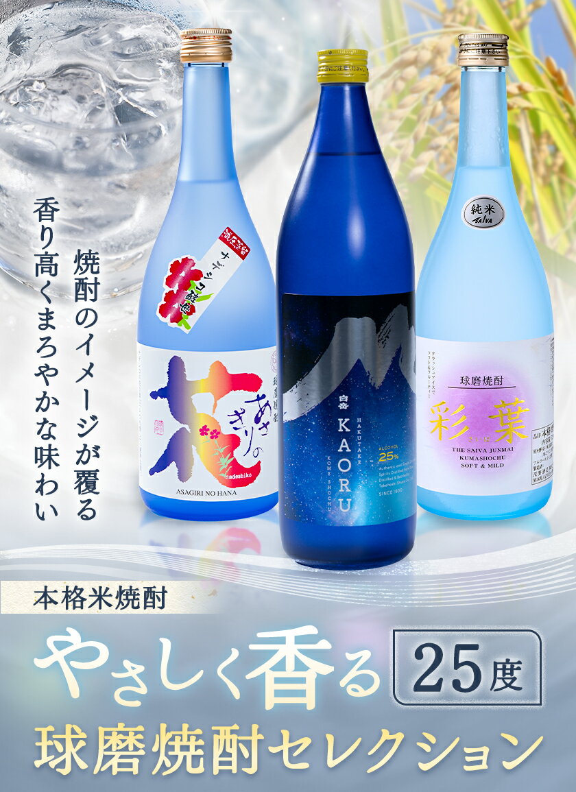 - 【ふるさと納税】本格米焼酎 やさしく香る 球磨焼酎 セレクション あさぎりの花 白岳KAORU 彩葉 25度 計3本《30日以内に出荷予定(土日祝除く)》熊本県 球磨郡 山江村 焼酎 酒 お酒 本格米焼酎 米焼酎 国産 熊本県産 国産米使用