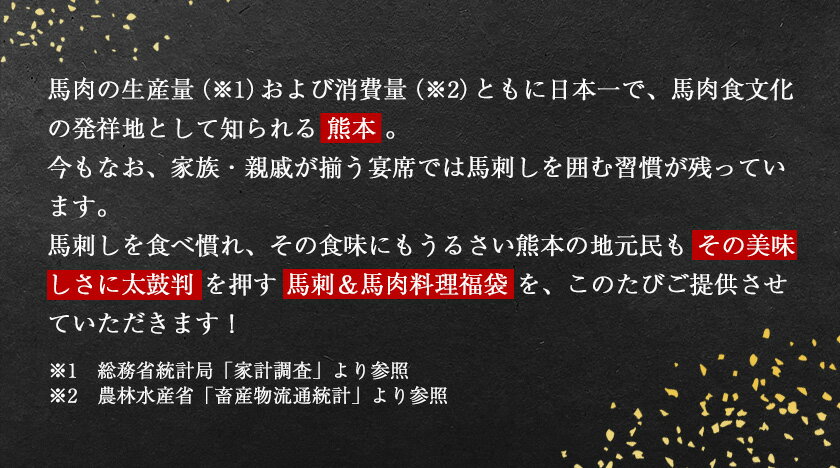 - 【ふるさと納税】純国産馬刺し&馬肉料理福袋 計1kg 熊本肥育 2年連続農林水産大臣賞受賞 送料無料 上赤身馬刺し100g たてがみ50g 馬とろ150g 馬ソーセージ500g 燻製 霜降り ハン馬ーグ200g(2個入り) タレ付き 熊本県山江村《90日以内に出荷予定(土日祝除く)》