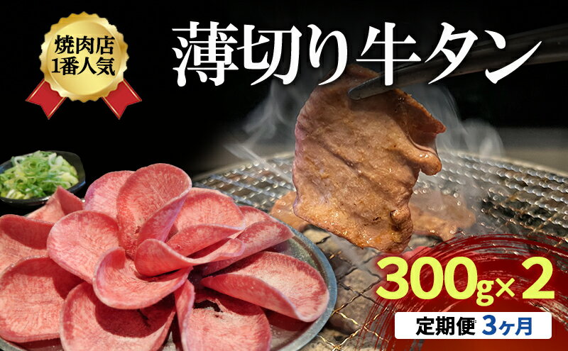 - 【ふるさと納税】【3か月定期便】焼肉店1番人気 薄切り牛タン 300g×2 | 牛肉 焼肉 焼き肉 アウトドア BBQ お届け:年末年始(12/29~1/4)の配送はいたしかねます。