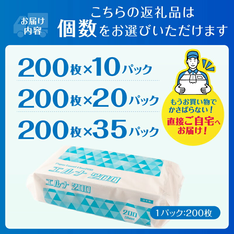- 【ふるさと納税】 紙タオル ペーパータオル エルナ 200枚×10P/20P/35P 再生紙100% 清潔 使いやすい 洗面所 キッチン オフィス 飲食店 ピロー包装 ポップアップ式 使い捨て 消耗品 日用品 生活用品 静岡県 富士市 [sf002-609-611]