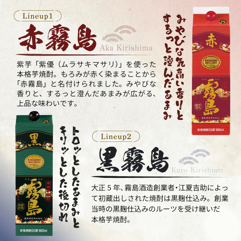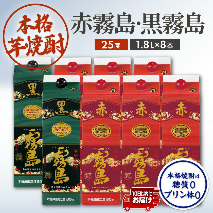 - 【ふるさと納税】【霧島酒造】赤霧島×6本・黒霧島×2本(1.8Lパック25度)セット≪みやこんじょ特急便≫ - 赤霧島 黒霧島 霧島酒造 紙パック 25度 1800ml 芋焼酎 飲み比べセット お酒 スピード配送便 送料無料 AI-M8-002 【宮崎県都城市は2年連続ふるさと納税日本一!】
