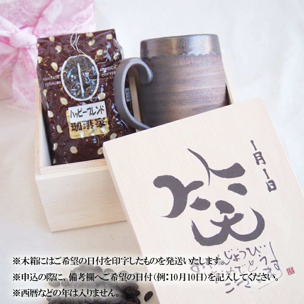 【ふるさと納税】【萬古焼】マグカップ、挽き立て珈琲豆(180g) お誕生日セット (デザイン書道家がデザインした木箱と四日市萬古焼マグカップ、挽き立て珈琲豆(180g))