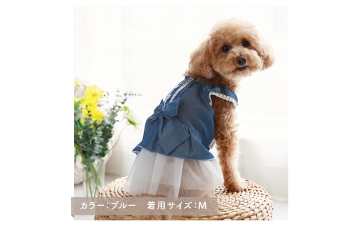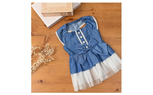 - リボンダンガリーワンピース デニム風(L) ドッグウェア 犬服 ブランド【ココアトワ(cocoAtoi)】 [№5223-7161]0254
