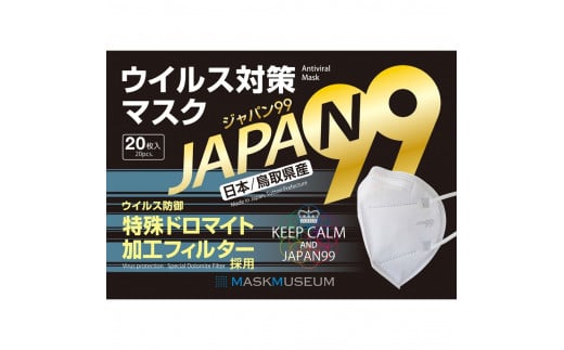 - R1-9【日本製】ジャパン99 5層構造 特許取得済み 特殊ドロマイト加工フィルター採用 マスク 個包装 20枚入×3箱