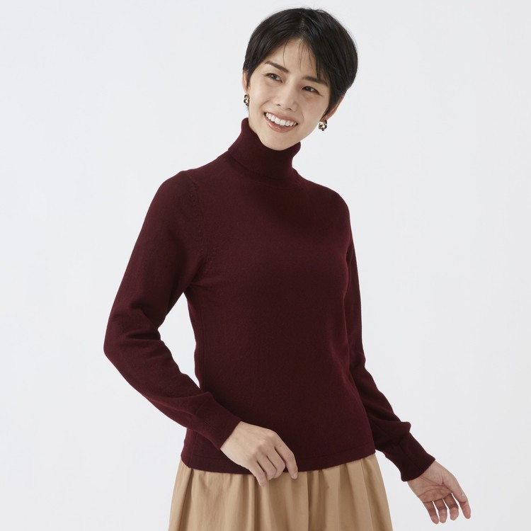 日本製 カシミヤ100% レディース タートルネック ワイン 2Lサイズ