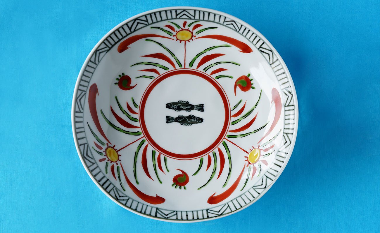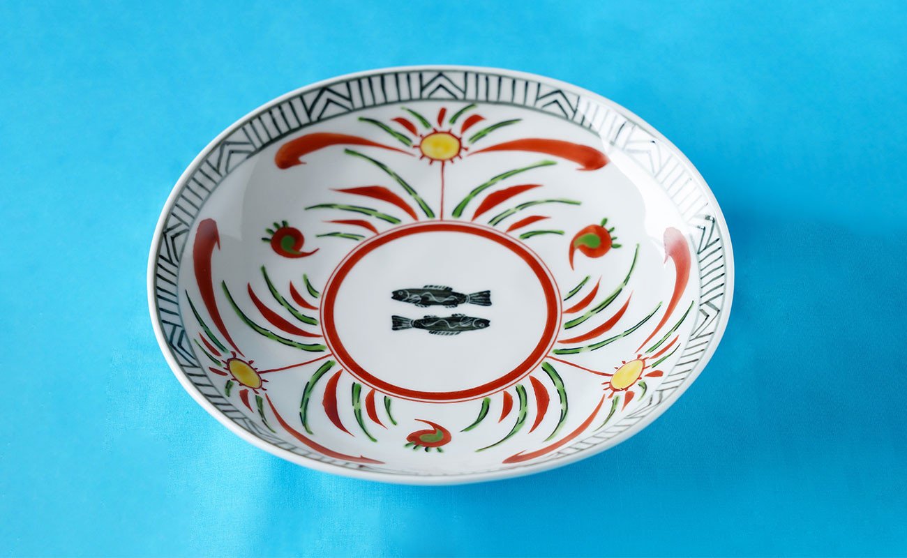 - 有田焼 染錦遊花双魚捻り 6.5寸皿 【神田陶器店】 皿 食器 和食 食器 赤 黄 お魚 A26-8