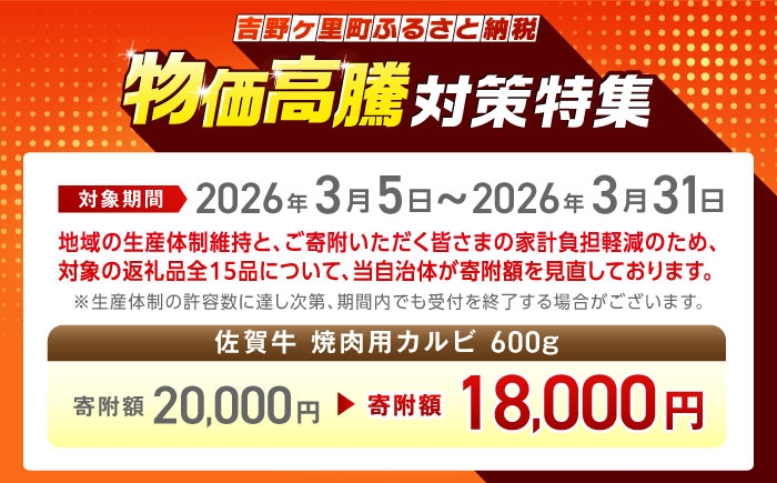 - 【国内トップクラスの黒毛和牛】 A4 A5 佐賀牛焼肉用カルビ600g 吉野ヶ里町/ミートフーズ華松