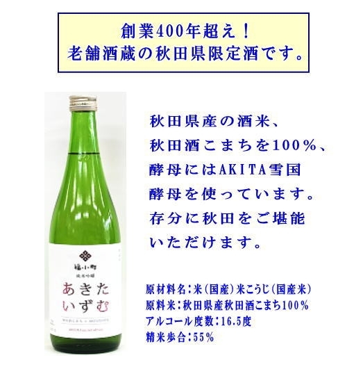 - 秋田県限定酒!福小町「あきたいずむ」720ml【小川忠太郎商店】[M5203]