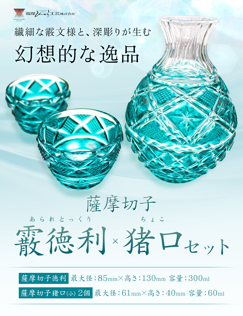 - 薩摩切子「霰徳利(あられとっくり)、猪口(ちょこ)(小)セット」(緑) 薩摩びーどろ工芸株式会社 《90日以内に出荷予定(土日祝除く)》鹿児島県 さつま町 送料無料 伝統工芸 切子 さつま切子 徳利 お猪口
