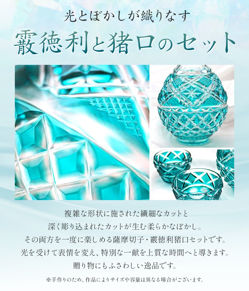 薩摩切子「霰徳利(あられとっくり)、猪口(ちょこ)(小)セット」(緑) 薩摩びーどろ工芸株式会社 《90日以内に出荷予定(土日祝除く)》鹿児島県 さつま町 送料無料 伝統工芸 切子 さつま切子 徳利 お猪口