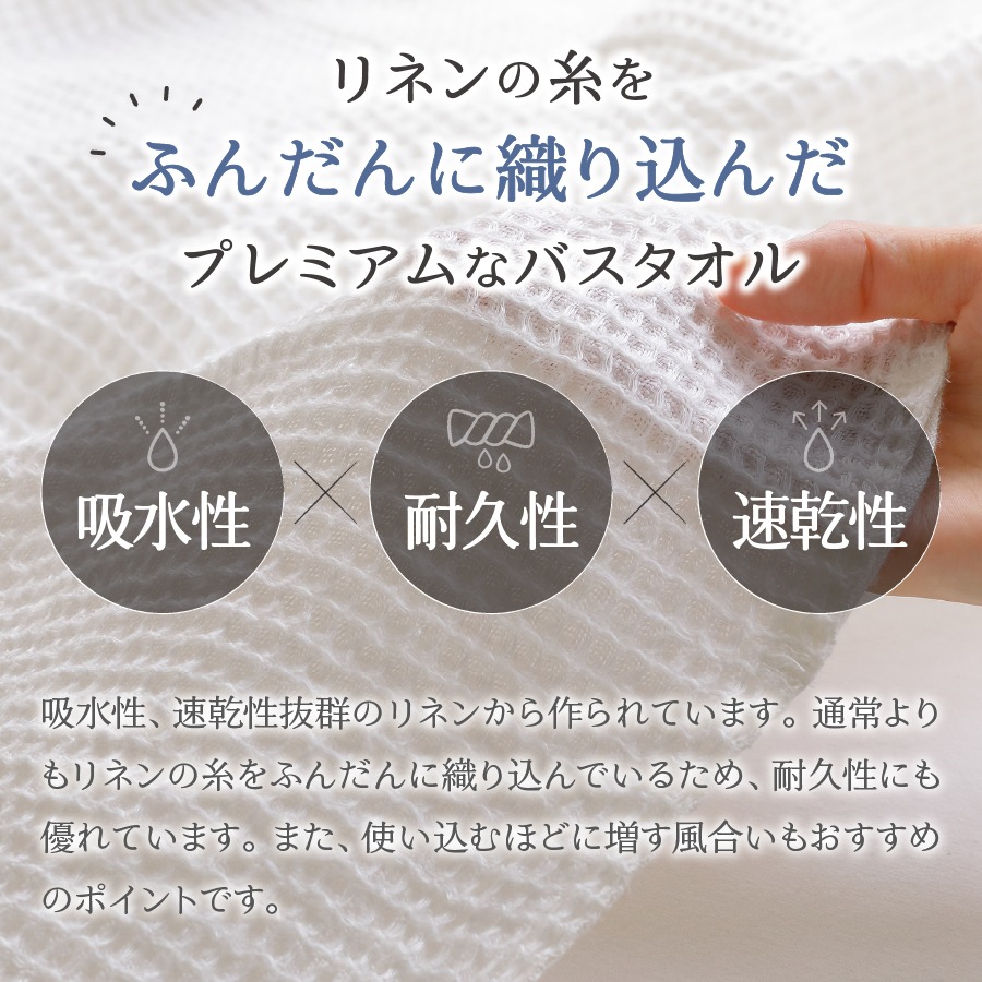 プレミアムワッフルリネンバスタオル(ホワイト×ホワイト / ホワイト×生成り / 生成り×ホワイト / 生成り×生成り)