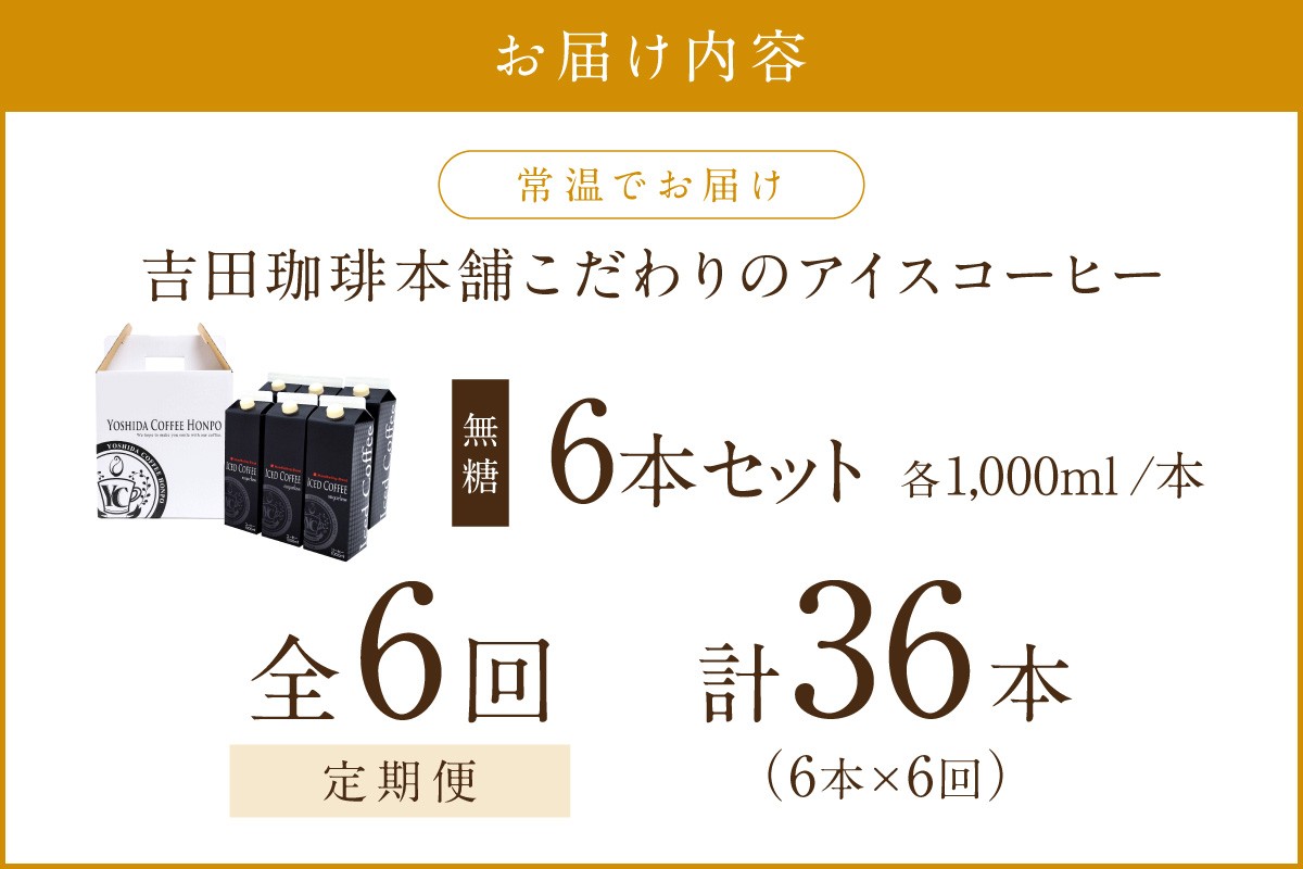 - 【吉田珈琲本舗】こだわりのアイスコーヒー無糖 6本 6ヶ月定期便【配送不可地域:北海道・沖縄・離島】【010A-001】