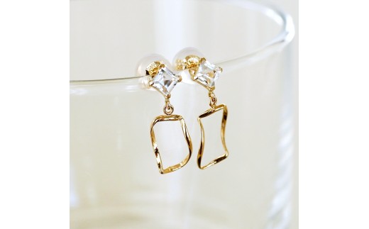 K10YG(10金) イエローゴールド ホワイトトパーズ 揺れる オシャレ ピアス 保証書付 N034 242-066-d