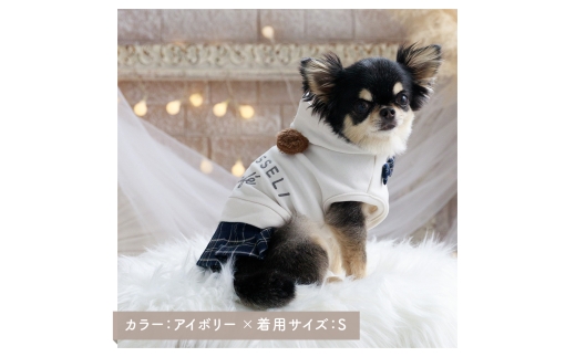 くまみみプリーツスカートワンピース (L) ドッグウェア くま耳 フード チェック柄【ココアトワ(cocoAtoi)】 [№5223-7187]0263
