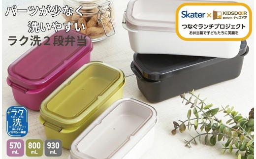 - 2段ランチボックス 【XLサイズ・コールブラック】1段でも2段でも使える 楽洗 留め具一体型 洗いやすい 白色 黒色 黄色 ピンク skater キッズドア【ランチ 弁当箱 お弁当 電子レンジ 食洗機 対応 大人 子供】 スケーター 727405 奈良県 奈良市 skt156