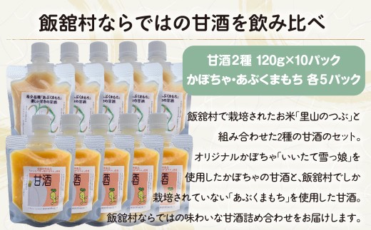 - 甘酒2種詰め合わせ 120g×10パック 【 ふるさと納税 人気 おすすめ 甘酒 あまざけ 米麴 里山のつぶ あぶくまもち ブランド米 銘柄米 かぼちゃ いいたて雪っ娘 希少 コラボ 地域密着 震災 復興 福島 飯舘村 】 ITTAM009