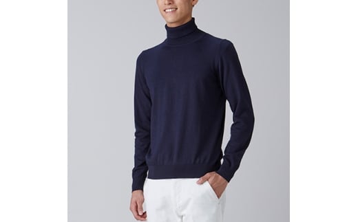 - 日本製 カシミヤ100% タートルネック ネイビー Lサイズ [2587]