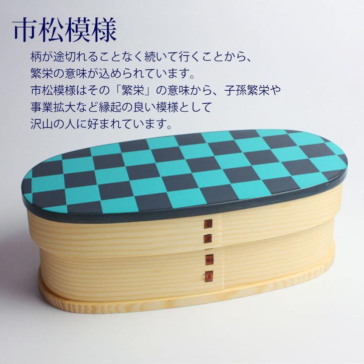 - みよし漆器本舗 紀州塗り 曲げわっぱ スリム型 弁当箱 400ml 伝統模様 市松 麻の葉 紀州漆器